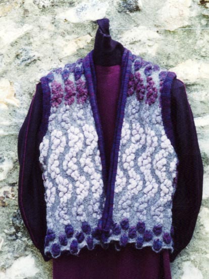 You can achieve a fascinating variety of textures by combining yarns that felt with ones that don't felt. This jerkin combines two stitchpatterns from Fabrics for Felting and attracts attention wherever it goes! | |||||||||||||||||||||