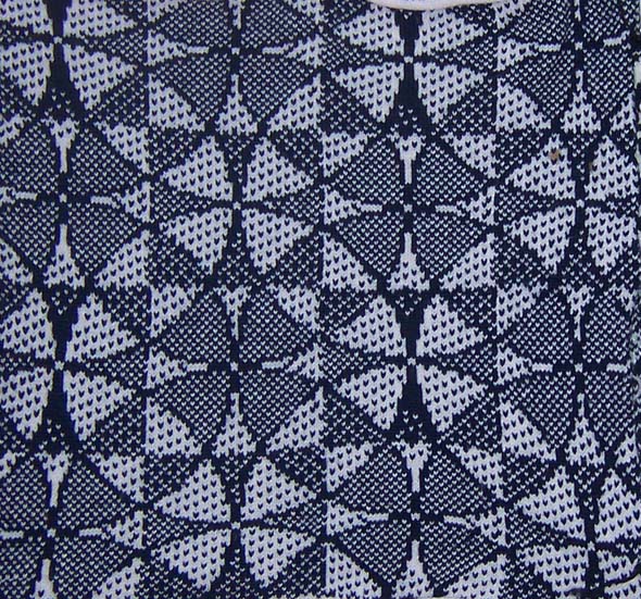 | All the books include design notes with colour and design ideas to try. If you are a Designaknit user and just want the stitchpatterns, opt for the DK disk. | Mystery Wheels design from Optical Illusions. This one could even be quilted to emphasise the optical circles. Average float length 3 st. maximum floats 6 st | Optical Circles design |